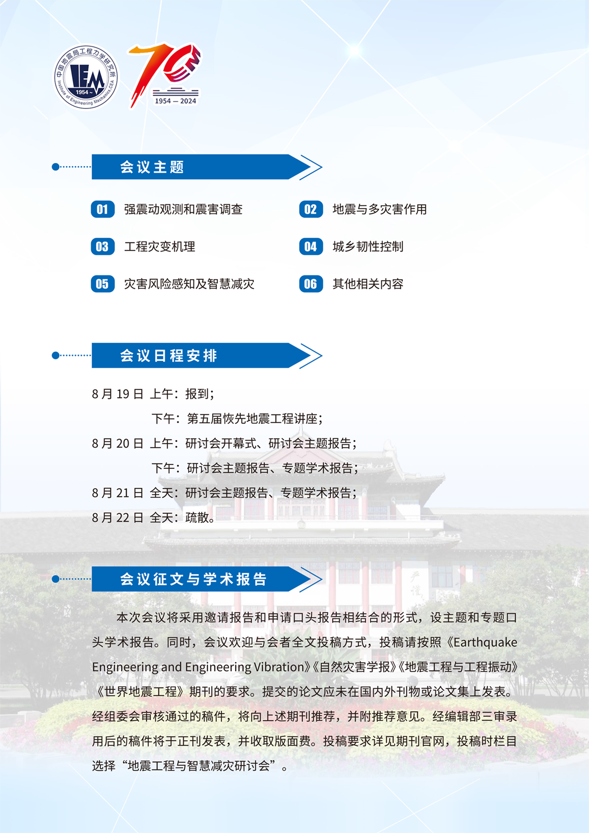 中國地震局工程力學(xué)研究所 地震工程與智慧減災(zāi)研討會暨第四屆韌性城鄉(xiāng)與防災(zāi)減災(zāi)論壇(一號通知)