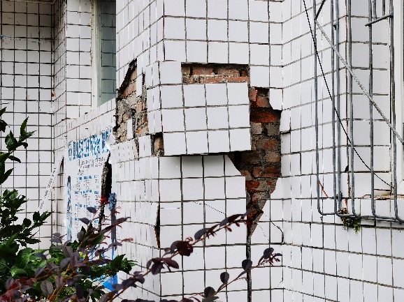 圖3 得妥鎮政府大樓(填充墻破壞以及非結構構件破壞)