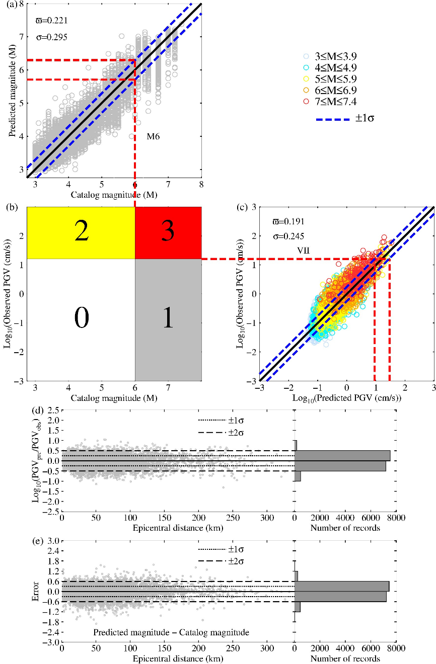 圖5 基于P波3秒數(shù)據(jù)的人工智能現(xiàn)地潛在破壞預(yù)測(cè)結(jié)果分布