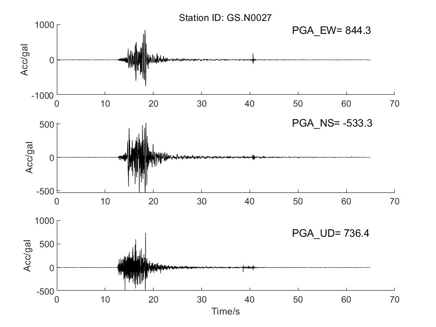 圖10 GS.N0027臺加速度時程曲線圖