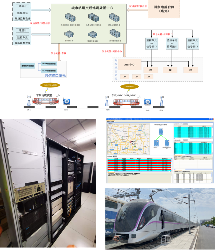 圖2 項目研發(fā)的城市軌道交通地震緊急處置系統(tǒng)及其在國家鐵道試驗中心進行示范應用情況
