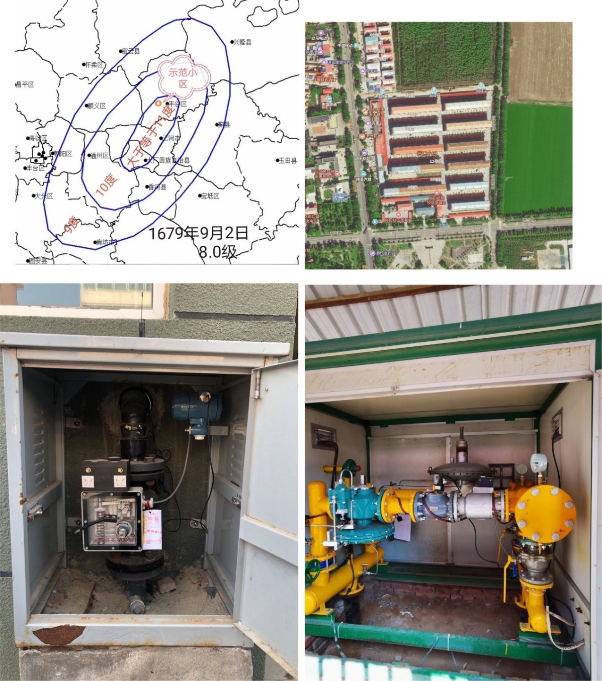 圖3 項目研發(fā)的燃氣地震緊急處置系統(tǒng)及其在北京平谷某小區(qū)進行示范應用情況