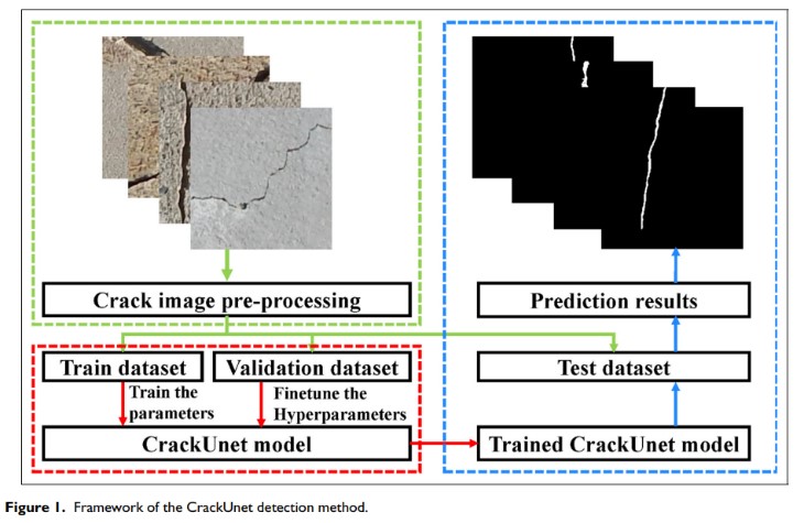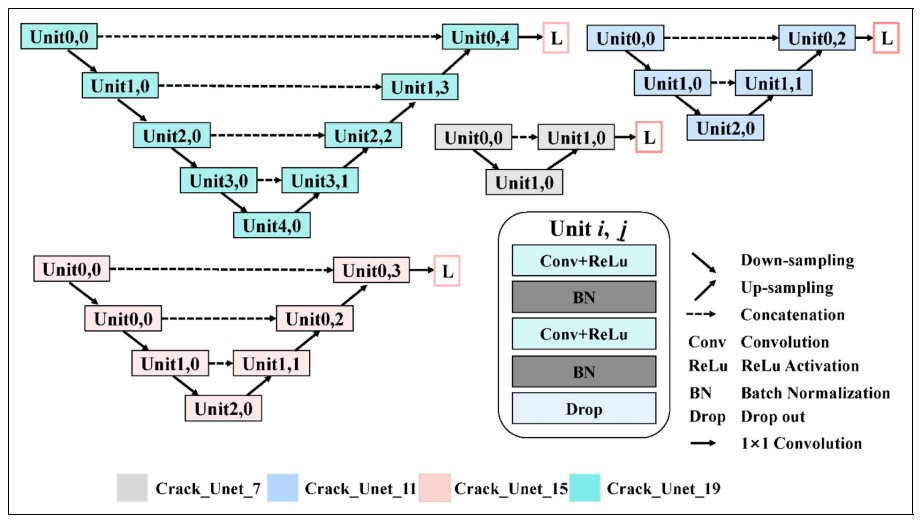 該成果在結(jié)構(gòu)健康監(jiān)測(cè)領(lǐng)域的國(guó)際權(quán)威期刊《Structural Health Monitoring-An International Journal》發(fā)表。(Zhang Lingxin, Shen Junkai*, Zhu Baijie. A research on an improved Unet-based concrete crack detection algorithm [J]. Structural Health Monitoring, 2021, 20(4): 1864-1879. DOI: https://doi.org/10.1177/1475921720940068) (IF: 5.929, *通訊作者)