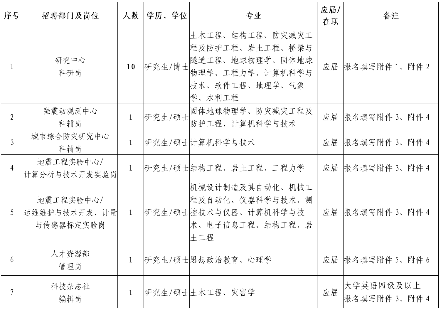 (2)熱愛防震減災科研事業,能全職在研究所相關學科科研崗位上工作,年齡一般不超過35周歲,科研成果特別突出者,年齡可適當放寬。